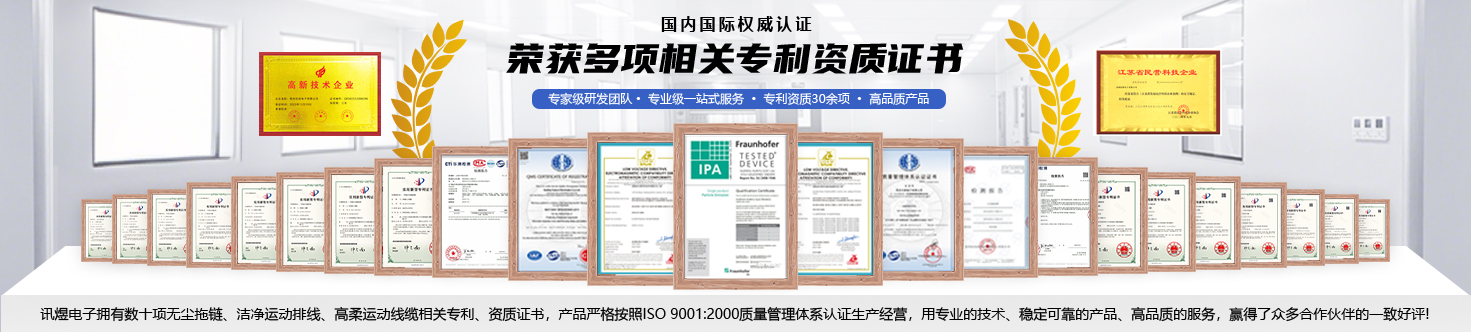 蘇州訊煜電子有限公司坐落于江蘇省蘇州市吳江經濟技術開發區,是國家認定的高新技術企業,深耕線纜與線束領域二十余年,專注于無塵拖鏈、潔凈高柔運動排線、真空線纜、潔凈線纜、高柔運動線纜及智能線束的研發與生產,提供從設計開發到量產交付的全流程服務。公司產品通過ISO 9001:2000質量管理體系認證,并符合RoHS、REACH、CE等國際標準,核心性能指標如潔凈度(IPA Class1)、折彎壽命(達數千萬次)及信號穩定性均達到了很高的標準。