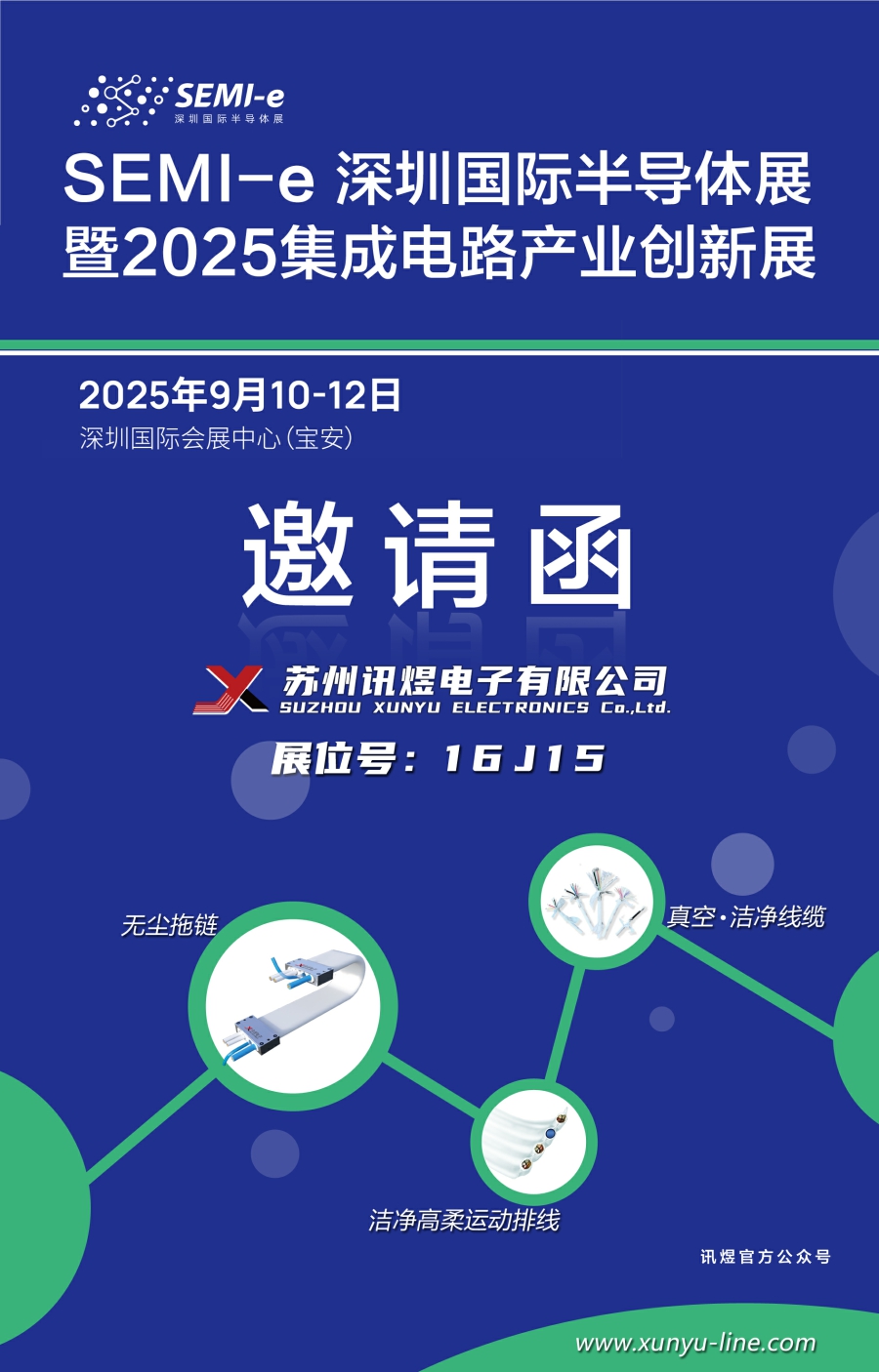 訊煜電子作為潔凈、無塵環境下運動傳輸及保護部件的專業提供商,誠邀您參加2025深圳國際半導體展(2025年9月10~12日,展位號:16J15),屆時歡迎各界人士蒞臨參觀指導、交流合作!